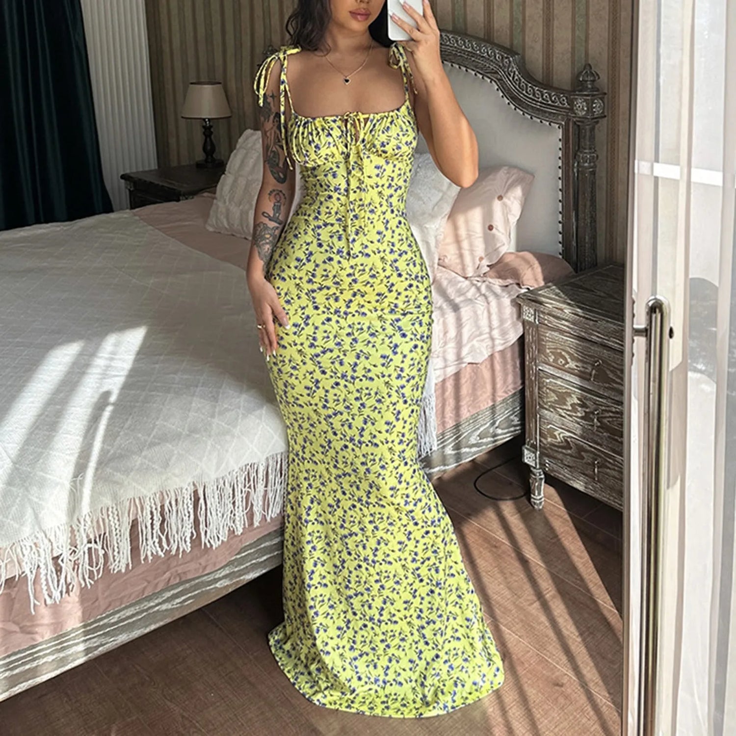 The Retro Floral Maxi Dress keeps you looking chic without compromising on comfort. Its flowy fabric and backless design ensure you stay cool and elegant, whether at a beach party or a casual outing.